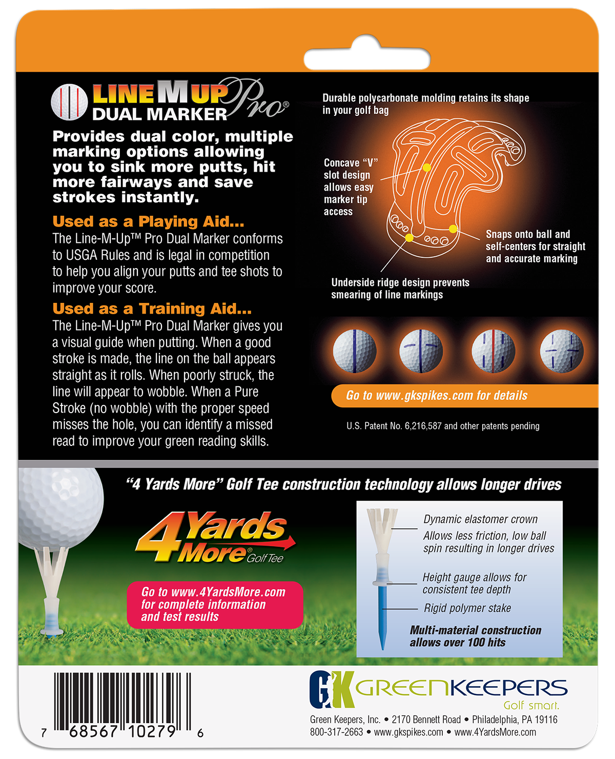 The Line-M-Up Pro Dual Marker gives you a visual guide when putting. When a good stroke is made, the line on the ball appears straight as it rolls.  When poorly struck, the line will appear to wobble. When a Pure Stroke (no wobble) with the proper speed misses the hole, you can identify a missed read to improve your green reading skills.